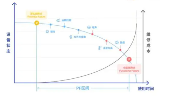 根據設備劣化趨勢P-F曲線我們可以知道,振動信號監測是狀態監測過程中可以被快速捕捉并廣泛應用的手段,通過對振動進行監測和分析,可以及早發現問題并采取適當的措施進行維修和保養,以確保設備的穩定性和可靠性。